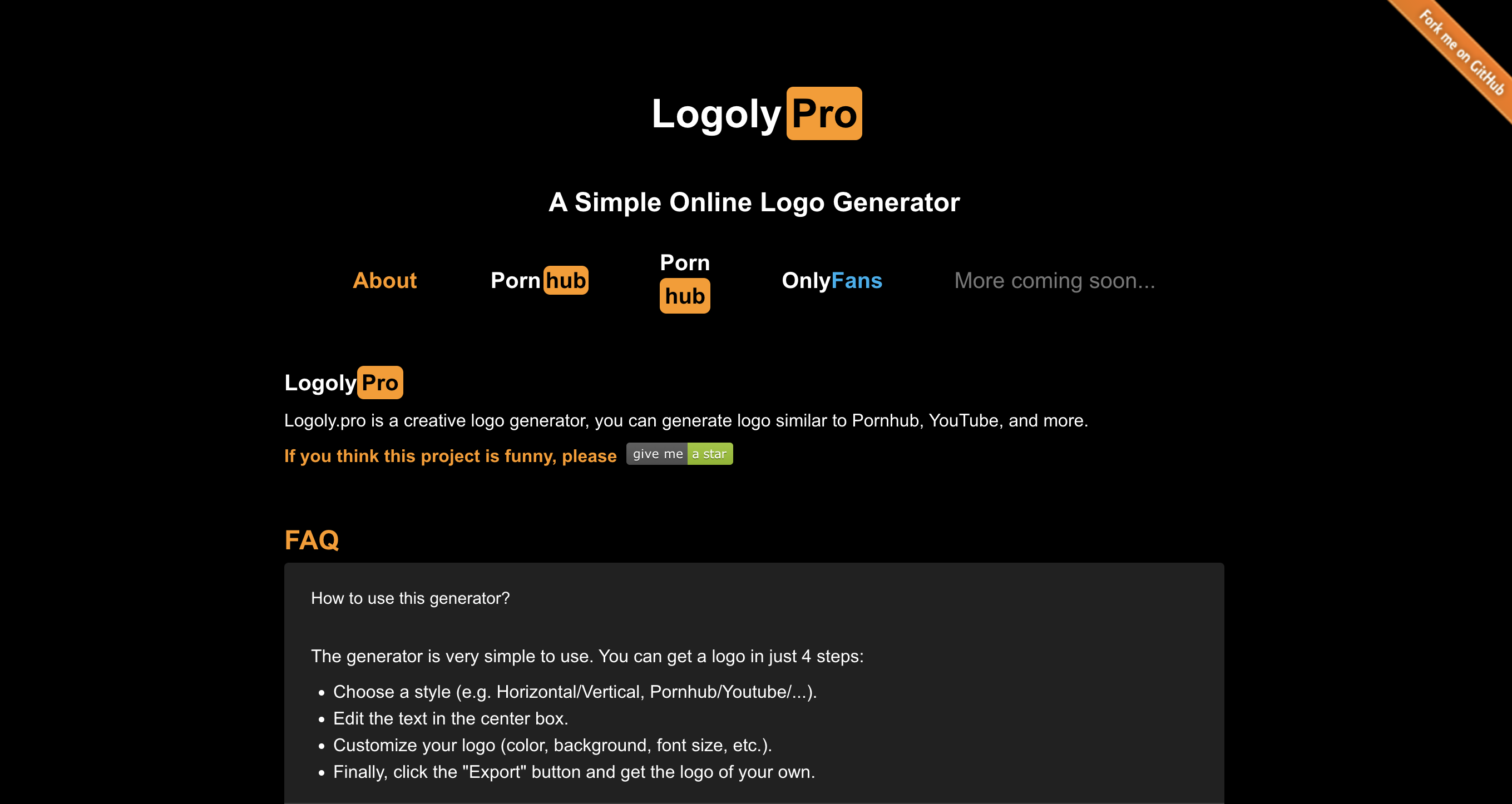 这个网站可以帮你快速制作PornHub风格的LOGO,主要是文字LOGO,简洁清晰,也可以免费使用;